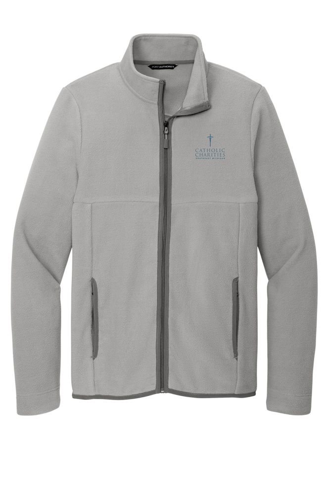 • This midweight, anti-pill fleece can easily take the place of a sweater or outerwear in many climates. Stretch binding details set it apart. • 7.4-ounce, 100% polyester fleece • Anti-pill • Stretch binding at center front zipper, pockets and hem • Front zippered pockets